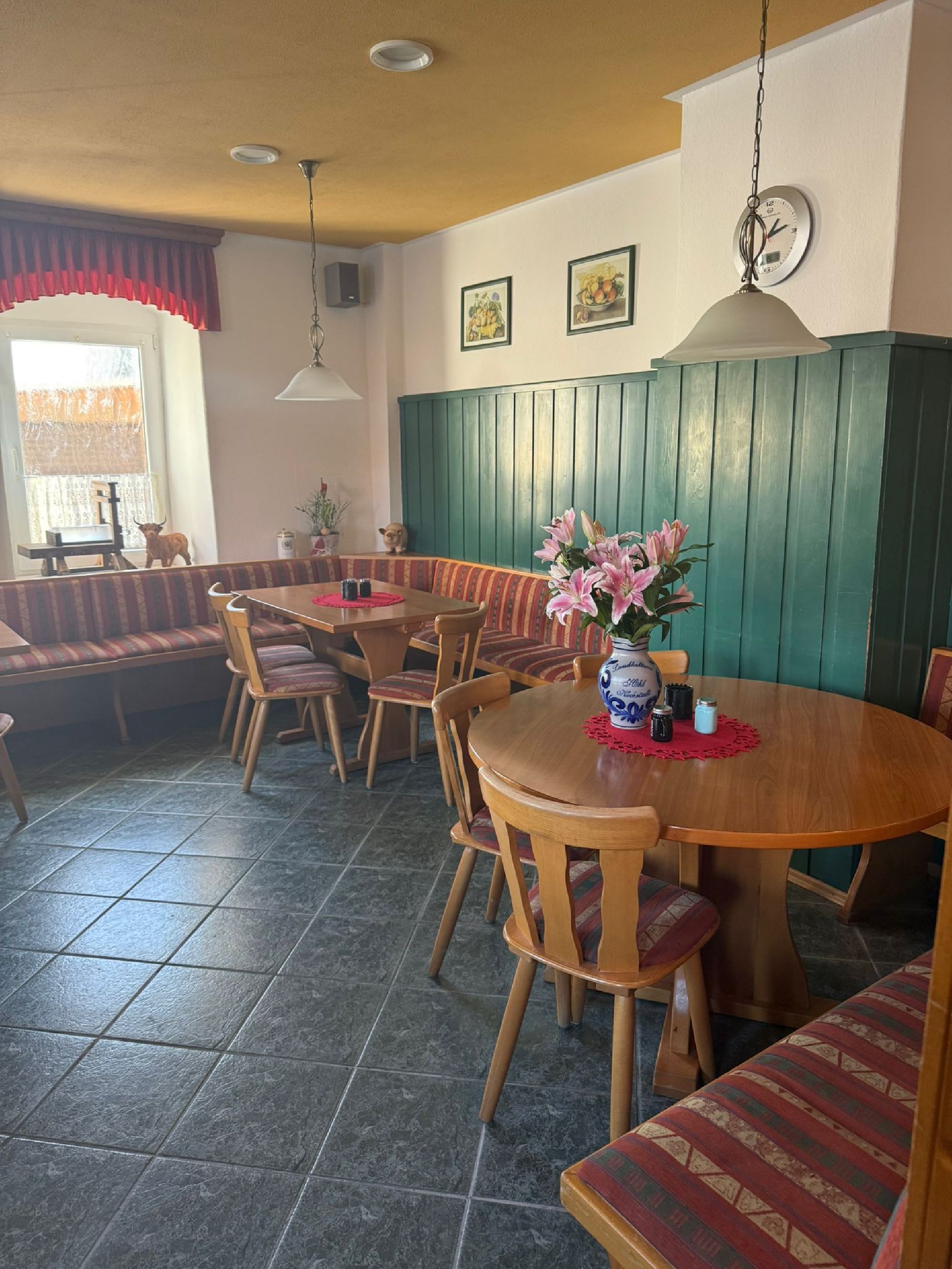 Kulinarischer Genuss, In unserer gemütlichen Gaststube mit 40 Sitzplätzen verwöhnen wir Sie mit gutbürgerlicher Küche. Freuen Sie sich auf eine abwechslungsreiche Speisekarte sowie wechselnde saisonale Spezialitäten.Für kleinere Feiern und private Anlässe steht Ihnen unser separater Raum zur Verfügung, der Platz für bis zu 30 Personen bietet. Feiern & Veranstaltungen Unser großzügiger Saal bietet Platz für bis zu 100 Gäste und eignet sich ideal für: